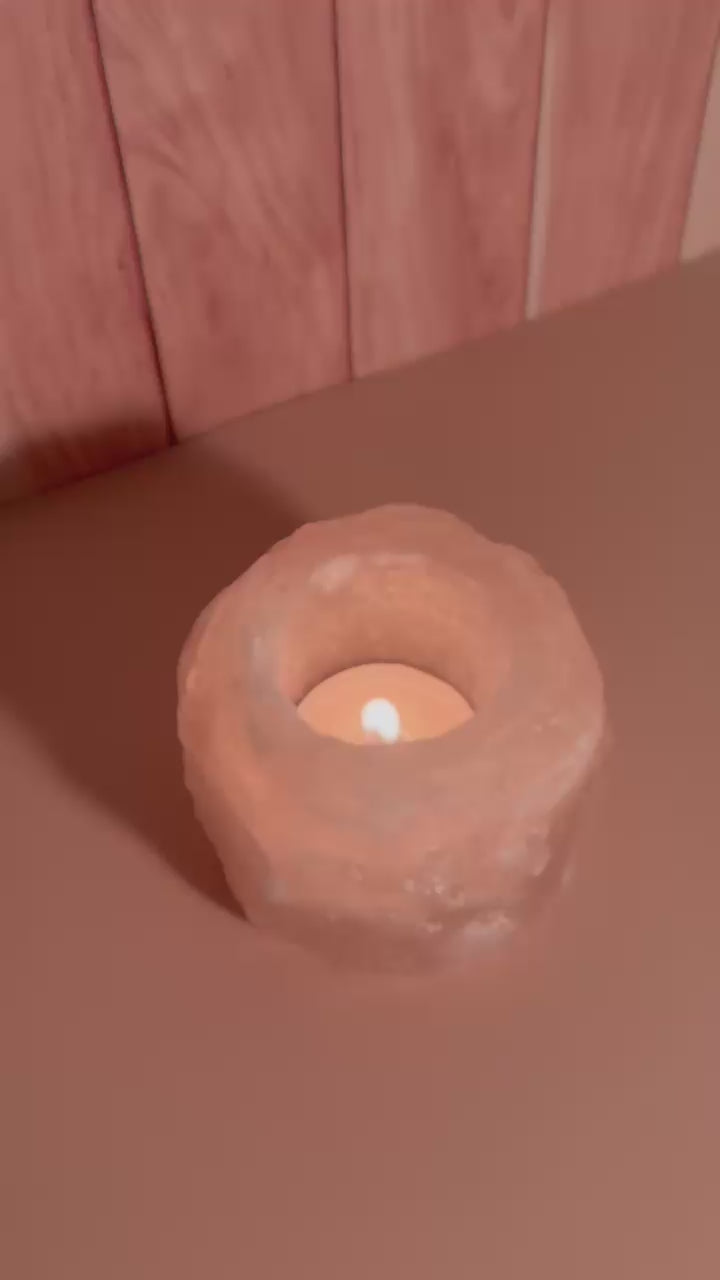 Este pack incluye un candelabro de sal del Himalaya y dos velitas de cera de soja natural de 21 g, con aroma.